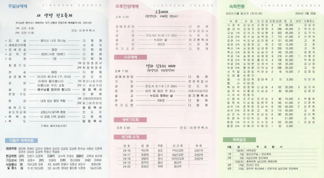 6월 2일 주보 진천교회 댓글 0건 조회 2,090회 작성일 2024-06-01 16:32 가 본문내용 확대/축소 본문 6월 2일 주보6월 2일 주보 풀은 마르고 꽃은 시드나 우리 하나님의 말씀은 영원히 서리라 하나 (이사야 40:8) 아멘 목록 댓글목록 이전글6월 9일 주보 24.06.08 다음글5월 26일 주보24.05.25