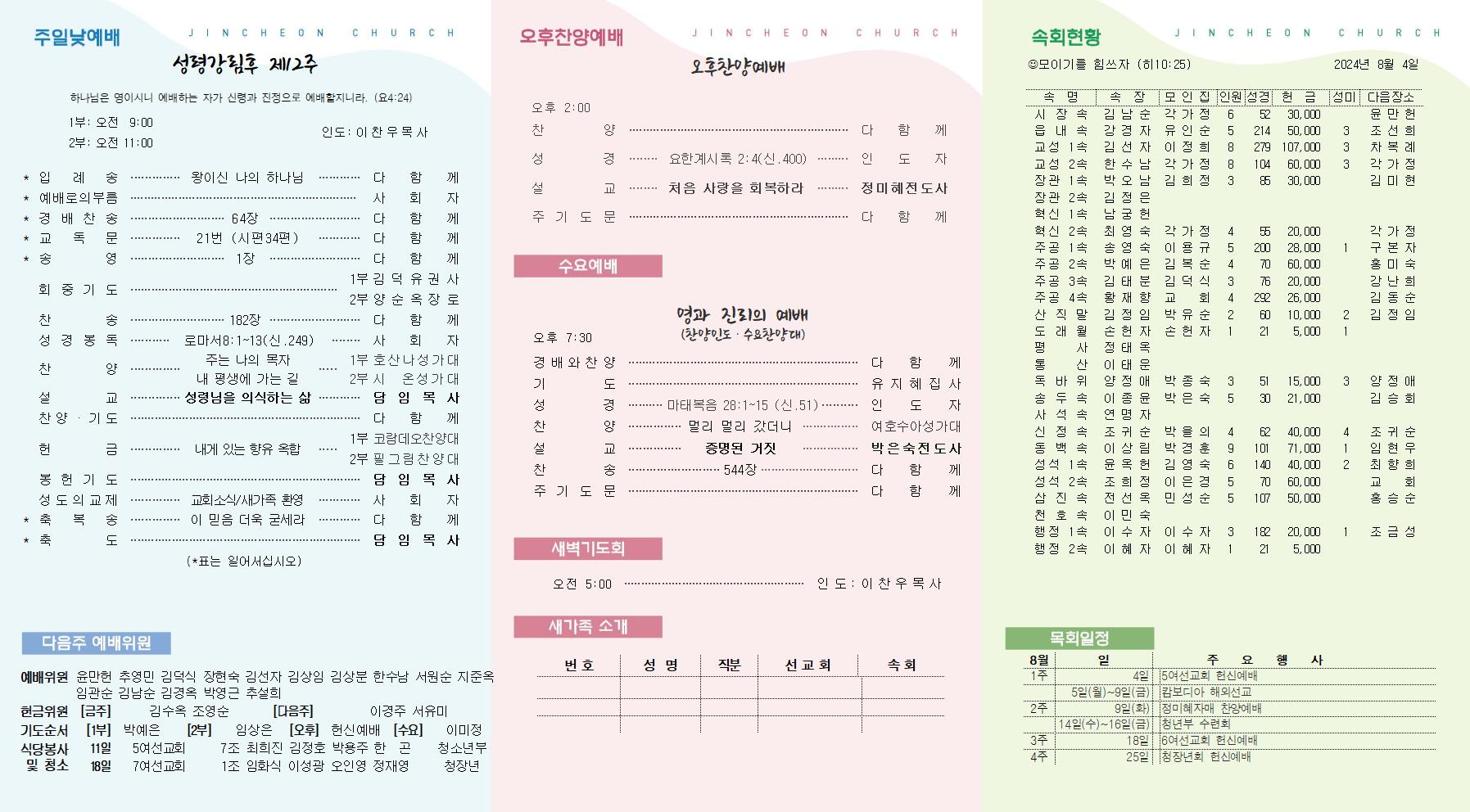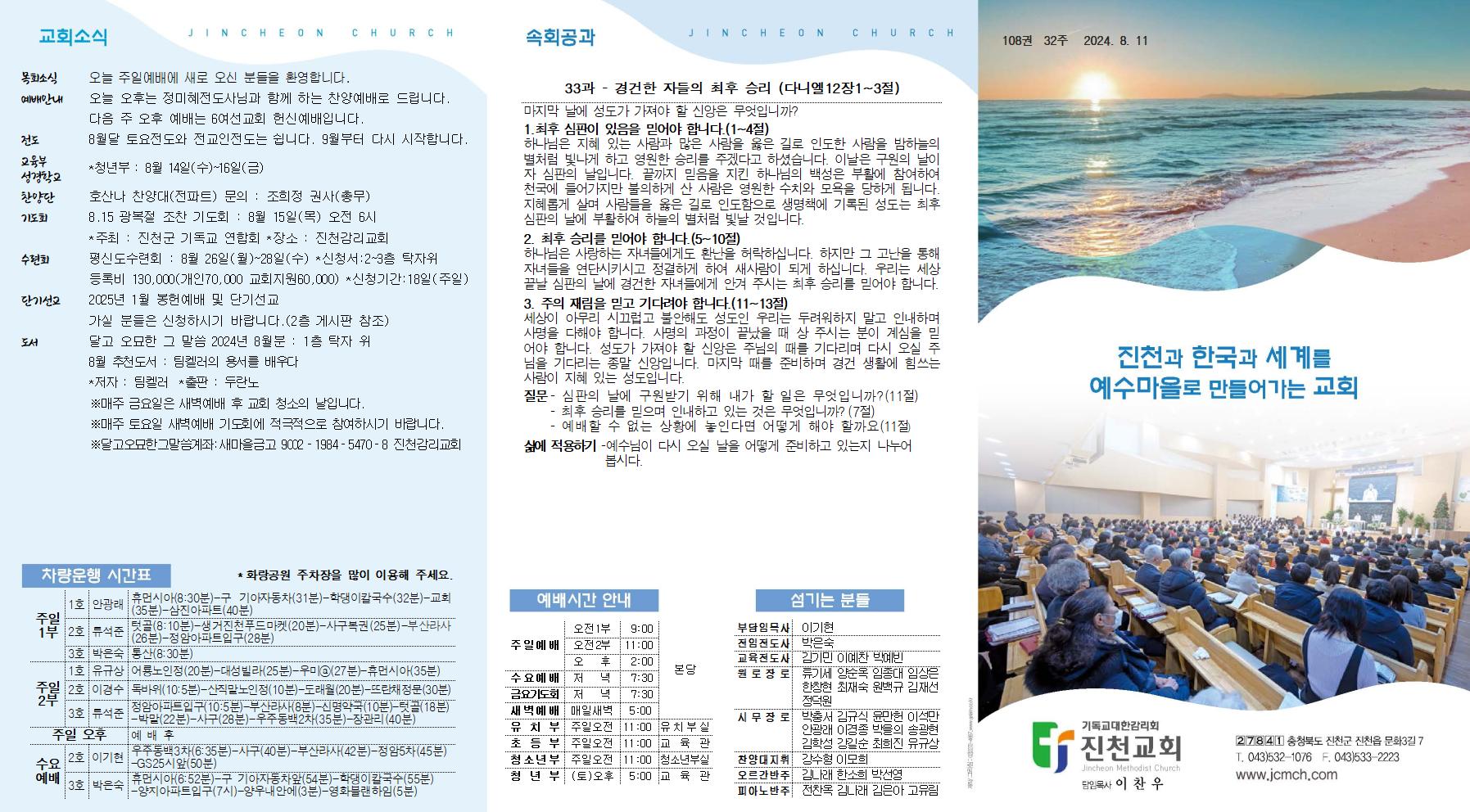 8월 11일 주보 진천교회 댓글 0건 조회 1,932회 작성일 2024-08-10 18:25 가 본문내용 확대/축소 본문 8월 11일 주보8월 11일 주보 이는 그리스도 예수 안에 있는 생명의 성령의 법이 죄와 사망의 법에서 너를 해방하였음이라 (롬8:2)아멘 목록 댓글목록 이전글8월 18일 주보 24.08.17 다음글8월 4일 주보24.08.03
