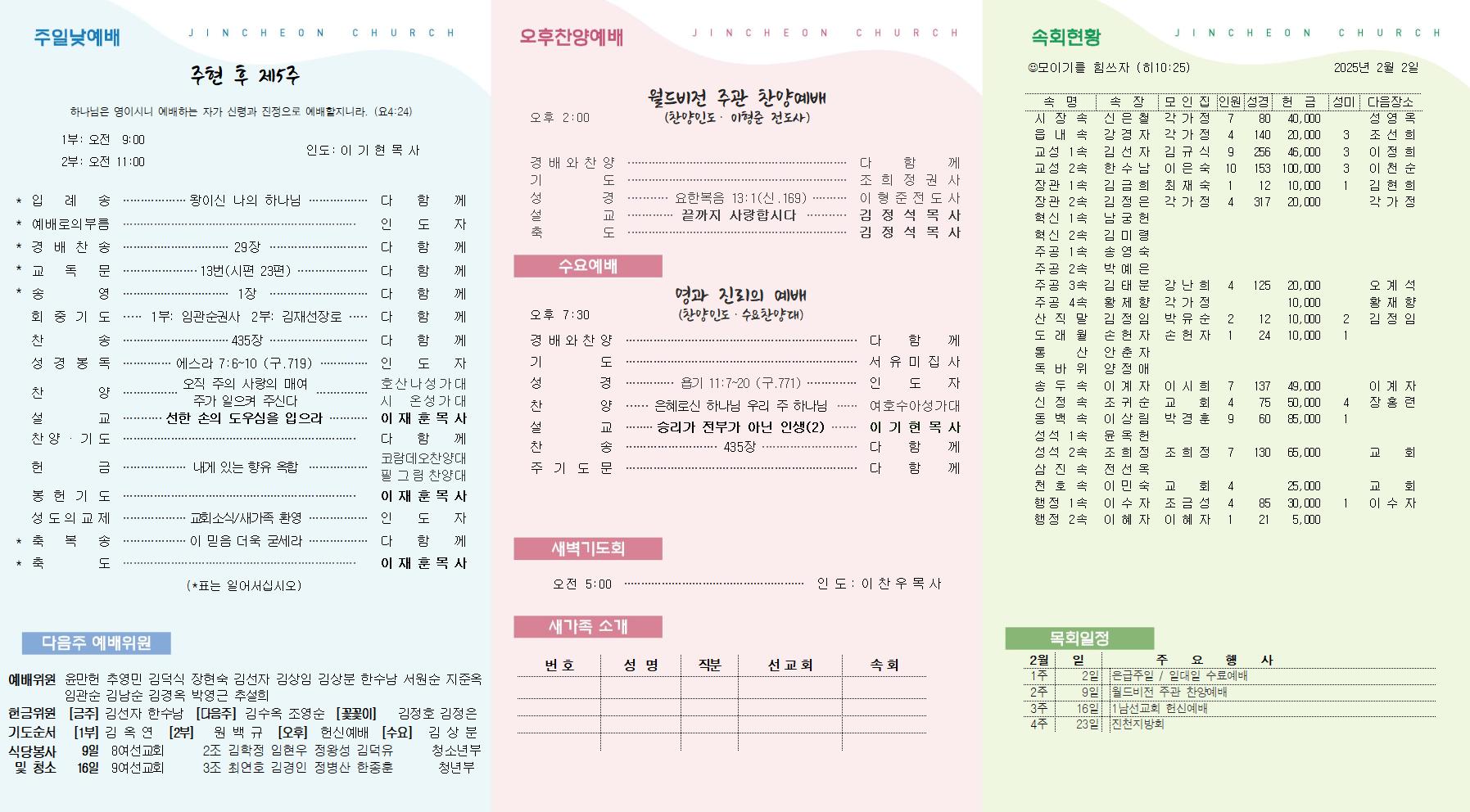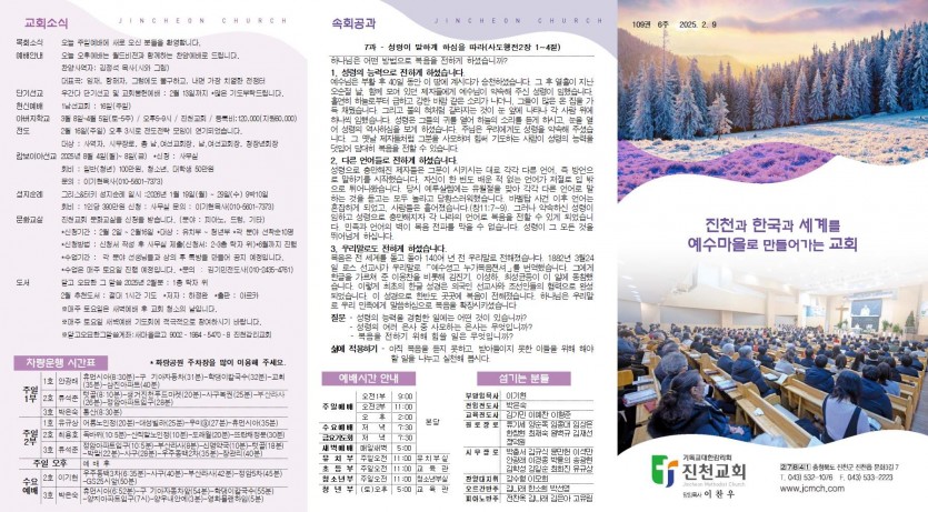 2월 9일 주보 진천교회 댓글 0건 조회 1,583회 작성일 2025-02-08 09:28 가 본문내용 확대/축소 본문 2월 9일 주보2월 9일 주보 에스라가 여호와의 율법을 연구하여 준행하며 율례와 규례를 이스라엘에게 가르치기로 결심하였더라 (스7:10) 아멘 목록 댓글목록 이전글2월 16일 주보 25.02.14 다음글2월2일 주보25.01.31