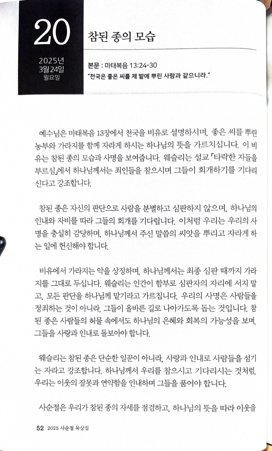 사순절 17일 묵상(참된 종의 모습) 진천교회 댓글 0건 조회 1,306회 작성일 2025-03-24 13:10 가 본문내용 확대/축소 본문 사순절 17일 묵상(참된 종의 모습)사순절 17일 묵상(참된 종의 모습) "천국은 좋은 씨를 제 밭에 뿌린 사람과 같으니라."마태복음13:24~30절 목록 댓글목록 이전글사순절 18일 묵상(성령의 역사와 참된 제자) 25.03.25 다음글사순절 묵상(말씀의 씨앗을 뿌리는 자)25.03.23