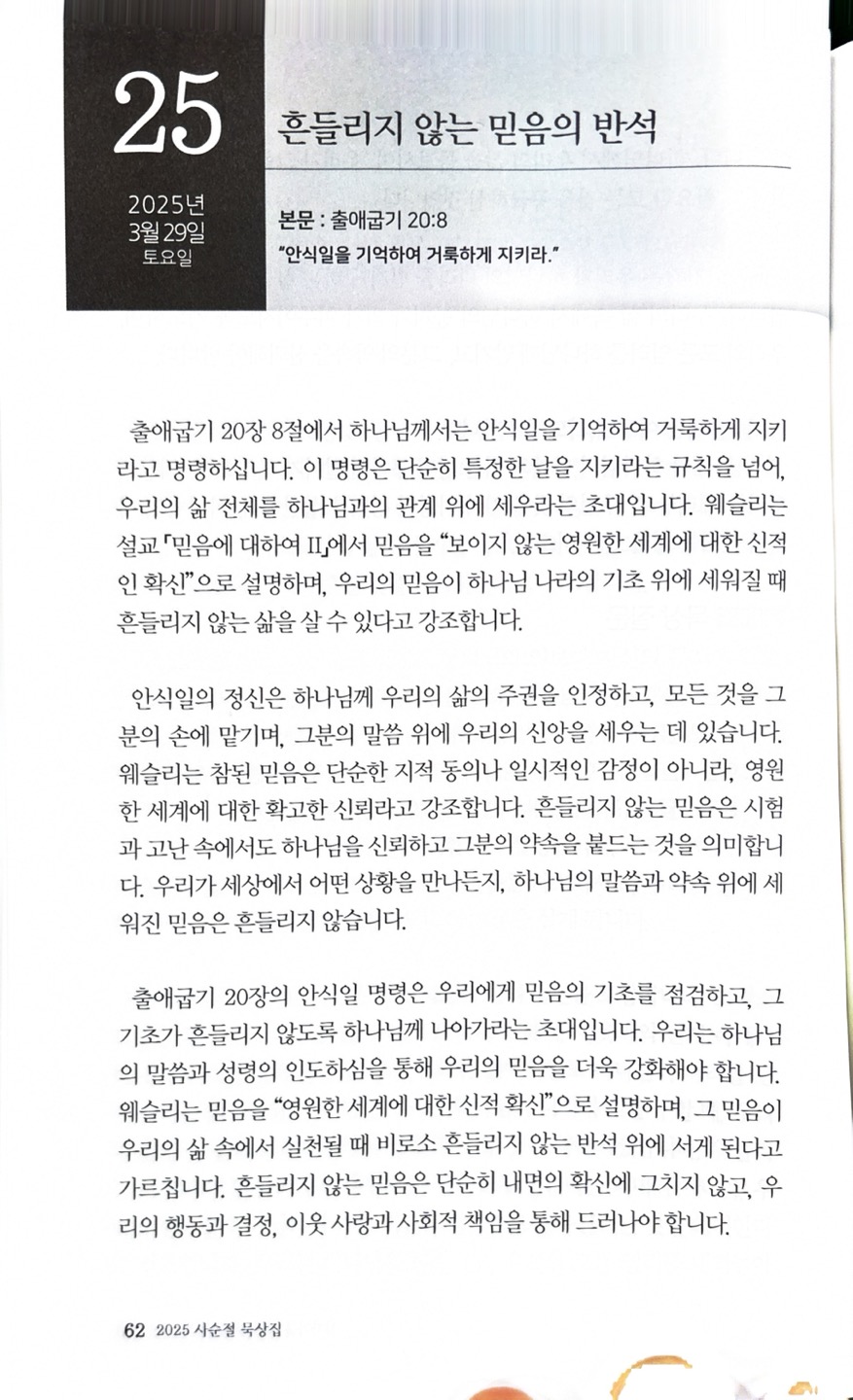사순절 22일 묵상(흔들리지 않는 믿음의 반석) 진천교회 댓글 0건 조회 1,258회 작성일 2025-03-29 21:35 가 본문내용 확대/축소 본문 사순절 22일 묵상(흔들리지 않는 믿음의 반석)사순절 22일 묵상(흔들리지 않는 믿음의 반석) "안식일을 기억하여 거룩하게 지키라."출애굽기20장8절 목록 댓글목록 이전글사순절 묵상(교회와 그리스도의 반석) 25.03.30 다음글3월 30일 주보25.03.28