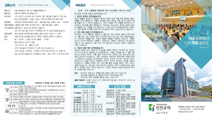 6월 15일 주보 진천교회 댓글 0건 조회 1,025회 작성일 2025-06-13 18:24 가 본문내용 확대/축소 본문 6월 15일 주보6월 15일 주보 아들을 낳으리니 이름을 예수라 하라 이는 그가 자기 백성을 그들의 죄에서 구원할 자이심이라 하니라 (마1:21)아멘 목록 댓글목록 이전글6월 22일 주보 25.06.21 다음글6월 8일 주보25.06.06