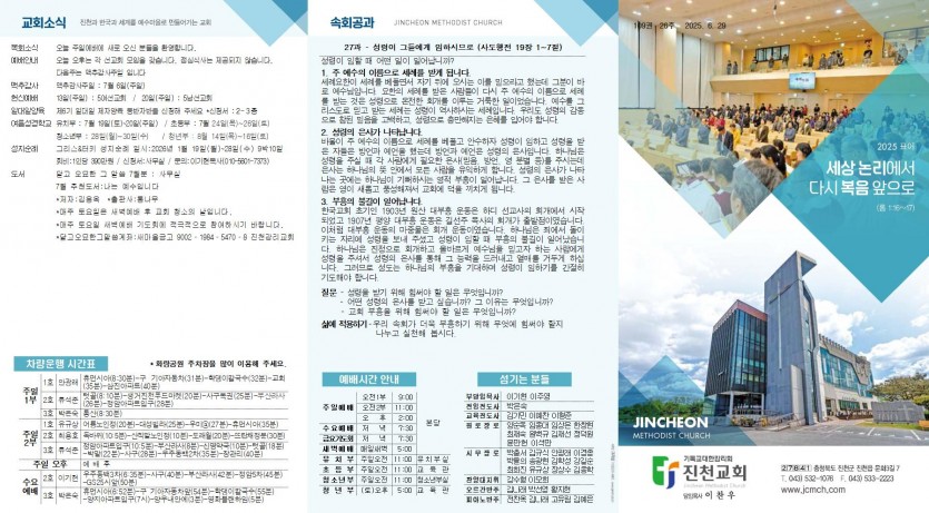 6월 29일 주보 진천교회 댓글 0건 조회 1,004회 작성일 2025-06-28 09:37 가 본문내용 확대/축소 본문 6월 29일 주보6월 29일 주보 하나님이 세상을 이처럼 사랑하사 독생자를 주셨으니 이는 그를 믿는 자마다 멸망하지 않고 영생을 얻게 하려 하심이라 (요 3:16)아멘 목록 댓글목록 이전글7월 6일 주보 25.07.05 다음글6월 22일 주보25.06.21