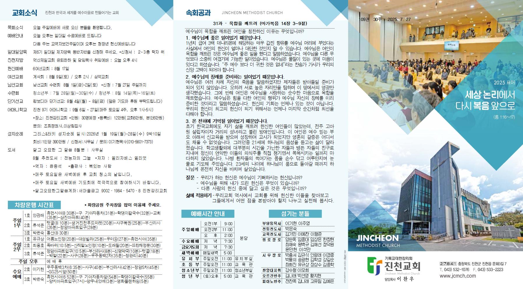 7월 27일 주보 진천교회 댓글 0건 조회 1,016회 작성일 2025-07-26 13:42 가 본문내용 확대/축소 본문 7월 27일 주보7월 27일 주보 우리가 그에게서 듣고 너희에게 전하는 소식은 이것이니 곧 하나님은 빛이시라 그에게는 어둠이 조금도 없으시다는 것이니라 (요일 1:5)아멘 목록 댓글목록 이전글8월 3일 주보 25.08.02 다음글7월 20일 주보25.07.18
