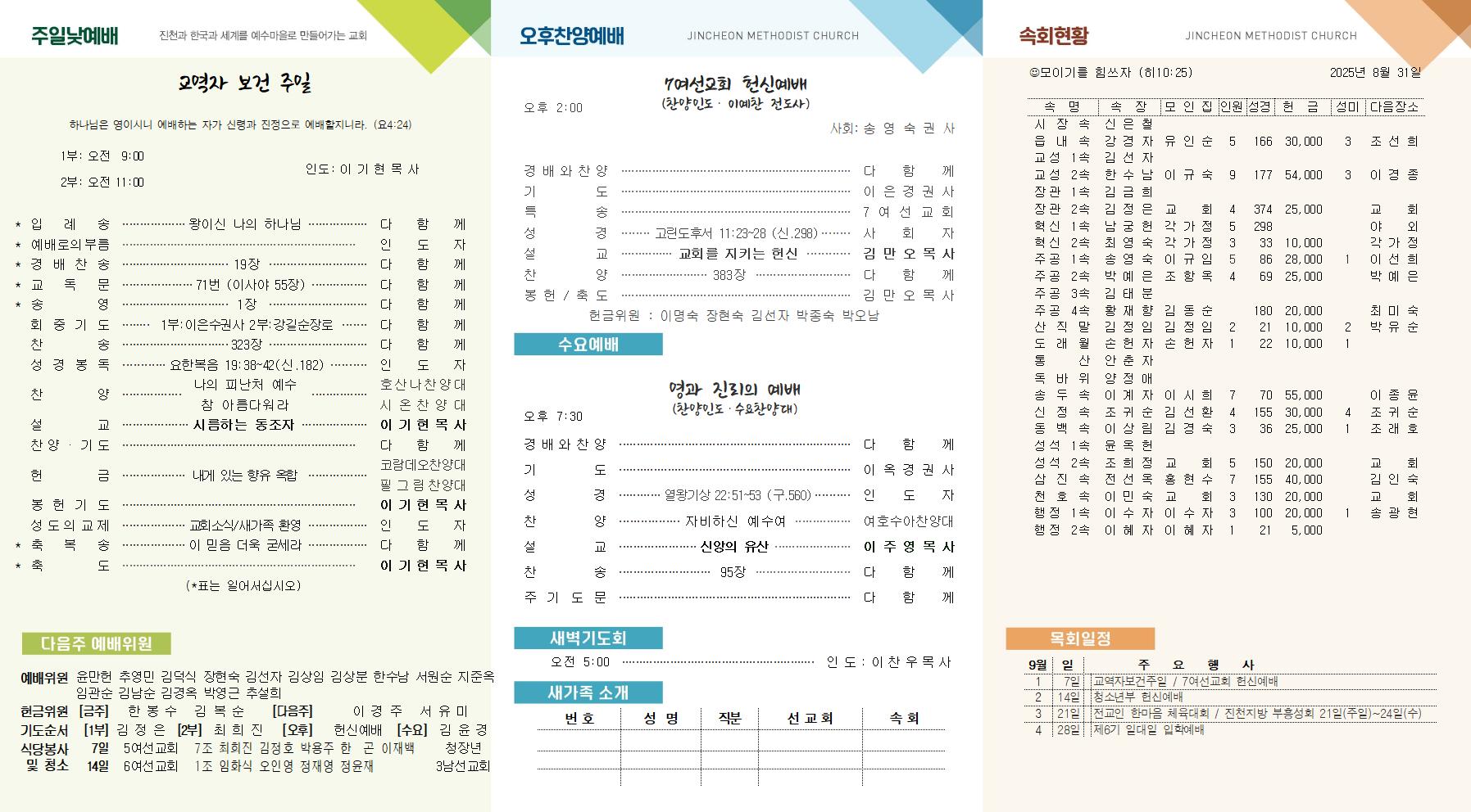 9월 7일 주보 진천교회 댓글 0건 조회 841회 작성일 2025-09-06 09:18 가 본문내용 확대/축소 본문 9월 7일 주보9월 7일 주보 아리마대 사람 요셉은 예수의 제자이나 유대인이 두려워 그것을 숨기더니 이 일 후에 빌라도에게 예수의 시체를 가져가기를 구하매 빌라도가 허락하는지라 이에 가서 예수의 시체를 가져가니라 (요19:38) 아멘 목록 댓글목록 이전글9월 14일 주보 25.09.13 다음글8월 31일 주보25.08.29